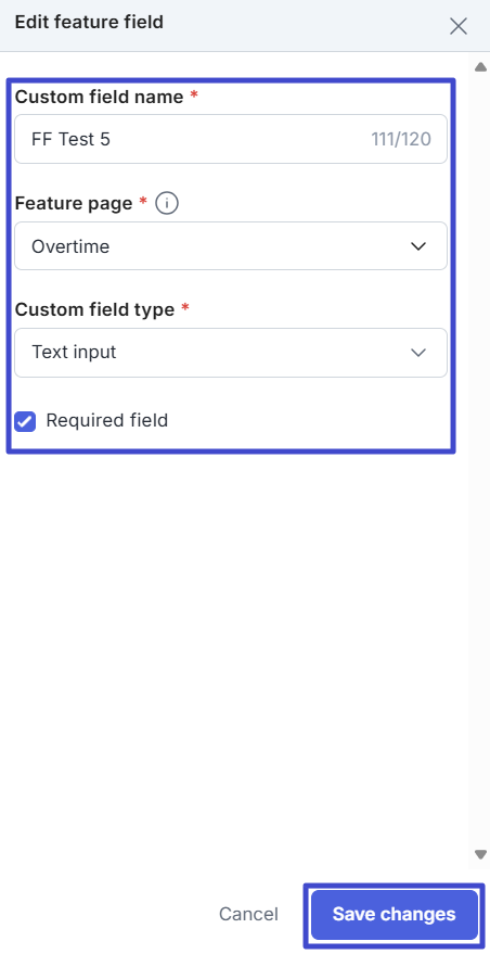 You'll then see the Edit feature field form, as shown below. You can change the information in the available fields, then click "Save changes" to save your changes.