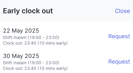 - Early clock out: Total times you clocked out earlier than the departure time.