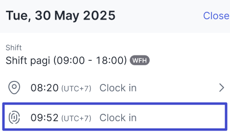 - Late clock in: Total times you clocked in late.