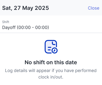 Attendance details during a Day off.