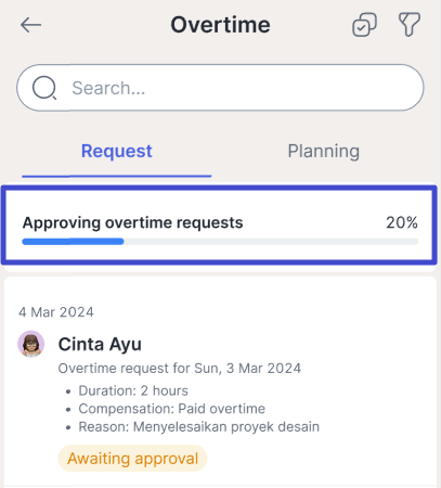 If you are the approval line for Overtime submissions and Overtime planning, you can view the list of Overtime submissions on Talenta Mobile. In addition, you can also take actions directly on those submissions.