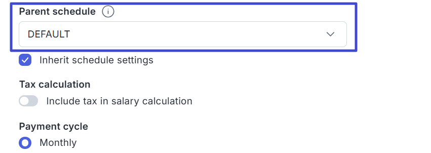 Select a Parent schedule to determine the main payroll schedule reference.