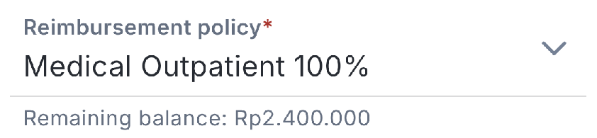 Choose the type of reimbursement in the Reimbursement policy column. After you select the reimbursement type, your remaining balance information will appear at the bottom.