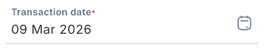 Fill in the transaction date according to the receipt or proof of payment in the Transaction date column.