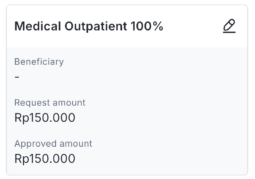 Fill in data such as Benefit, Request amount, and Beneficiary. Then, click "Save". The entered data will appear as follows. You can edit it again by clicking the "pencil" icon.