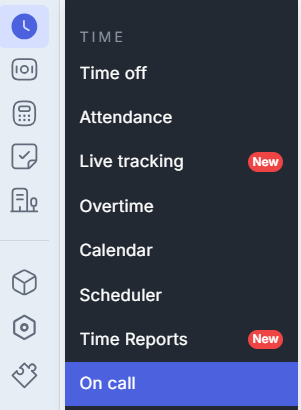 To schedule a specific date for an employee to be on-call so they are on standby before that date, go to the Time menu, then click On call.