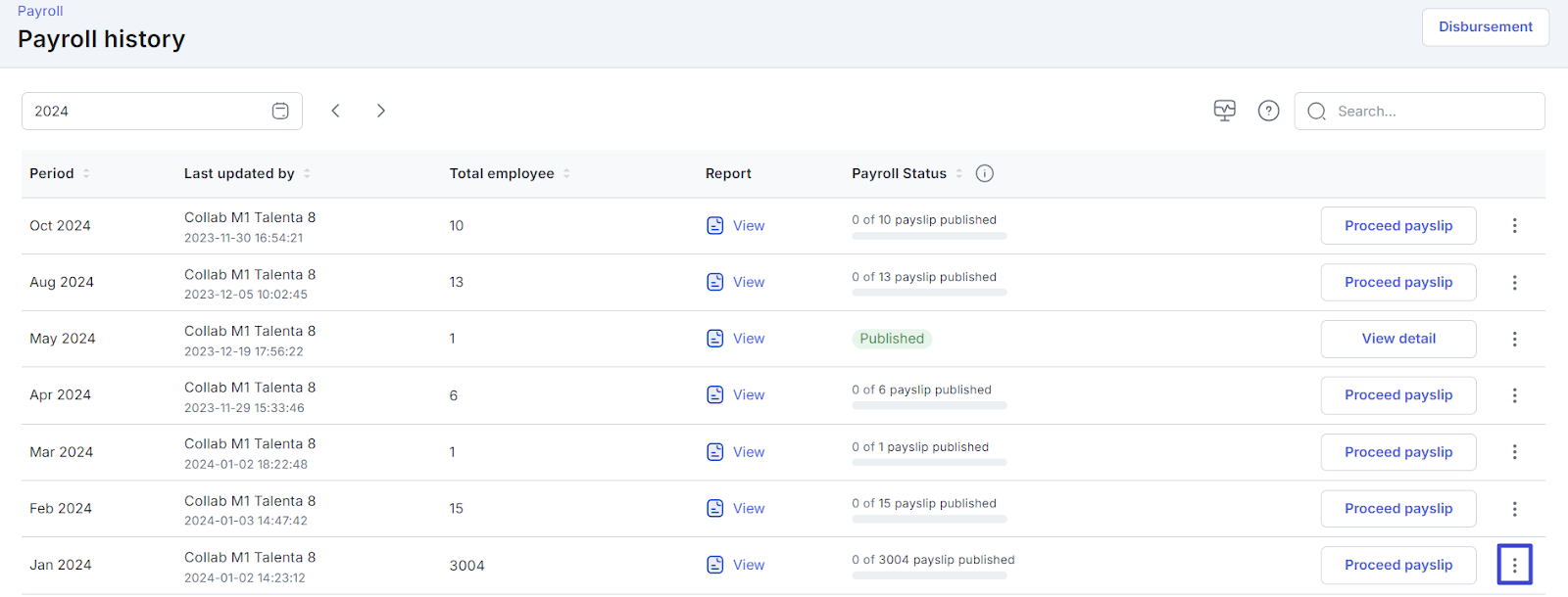 Then, select payroll period that you want and click the “three dots”.