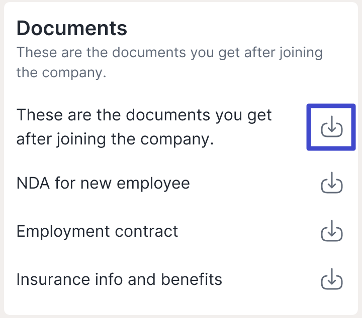 - Submitted: Already filled in. - The next section contains a list of documents that you can download by clicking the "download" icon.