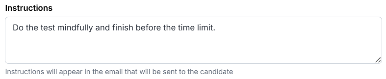 Next, fill in the task execution instructions. These instructions will appear in the Invitation email to the candidate.