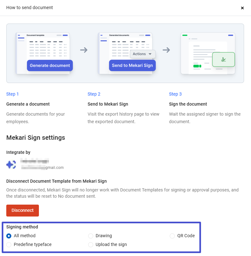 Then, click “Connect to Mekari Sign” on the pop-up that appears on the Document template page.