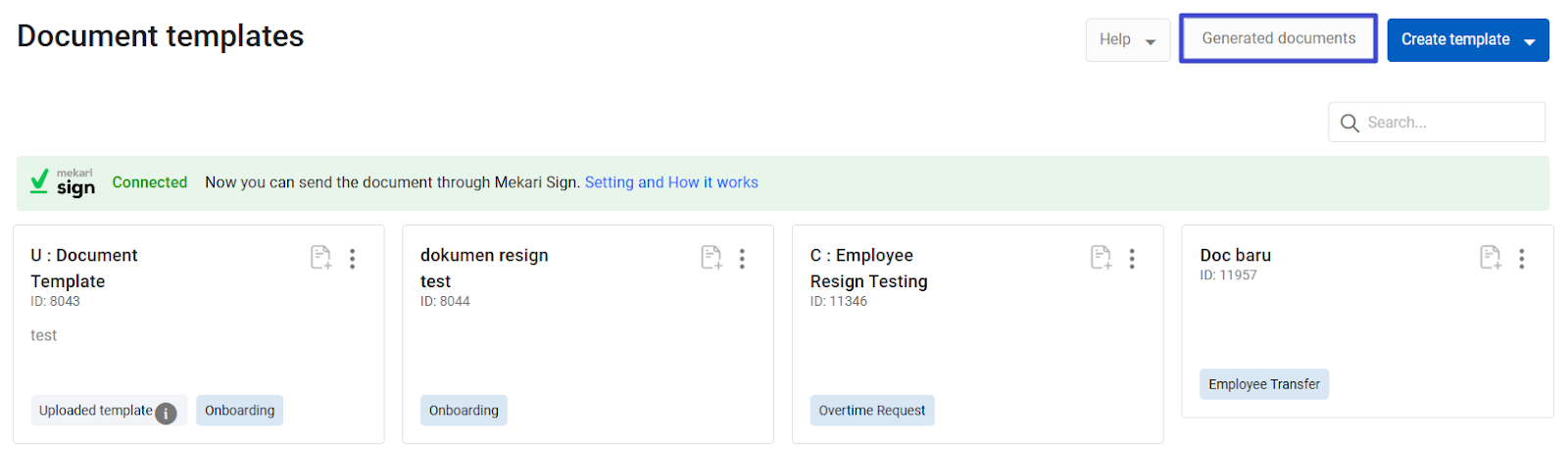 That is the guide on how to integrate document templates with Mekari Sign. Next, you can learn how to manage document templates here.