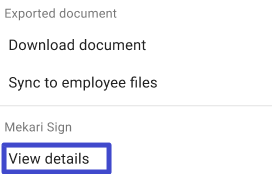 For documents that have been sent with the status Waiting for others, Declined, or Completed on the Export history page, you can click “Actions” and View details to see the document signing history.