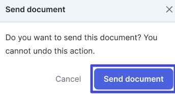 - Click the “Send document” button on the pop-up to continue sending the document.