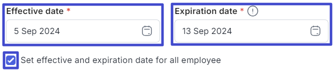 Determine the effective date and expiration date of the reimbursement. However, you can also uncheck Set effective and expiration date for all employees if there is no assign & update reimbursement effective and expiration date.