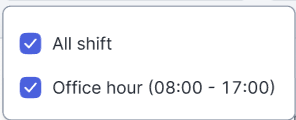 - Team attendance rate: Shows the percentage value of team attendance. The intended attendance is the clock-in or clock-out and the scheduled clock-in and out times, without break time, divided by the total clock-in and out times according to the work schedule.