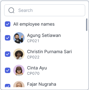 This table serves to make it easier for you to review detailed information about employee attendance data in your team, including branch, organization, position, month of attendance, and shift.