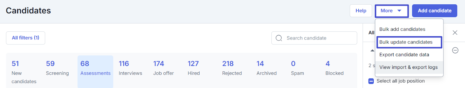 You will be directed to the following page. Click “Select candidates” to choose the names of candidates whose hiring stage you want to update.