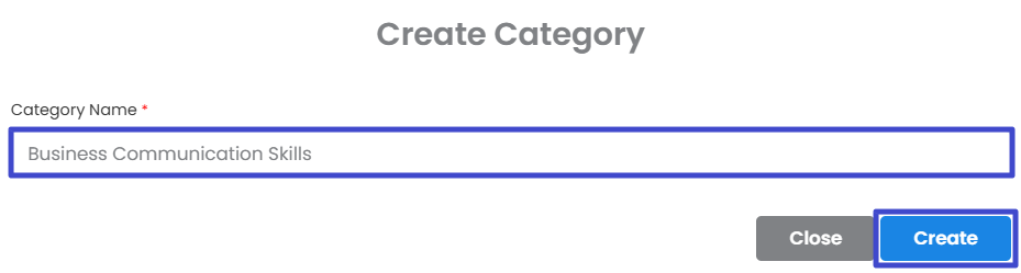 Fill in the Category name, then click “Create”. For example, Business Communication Skills.