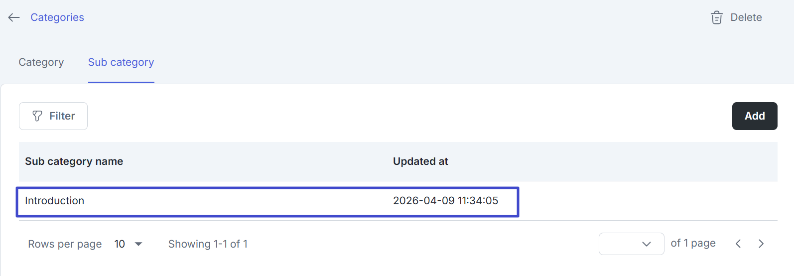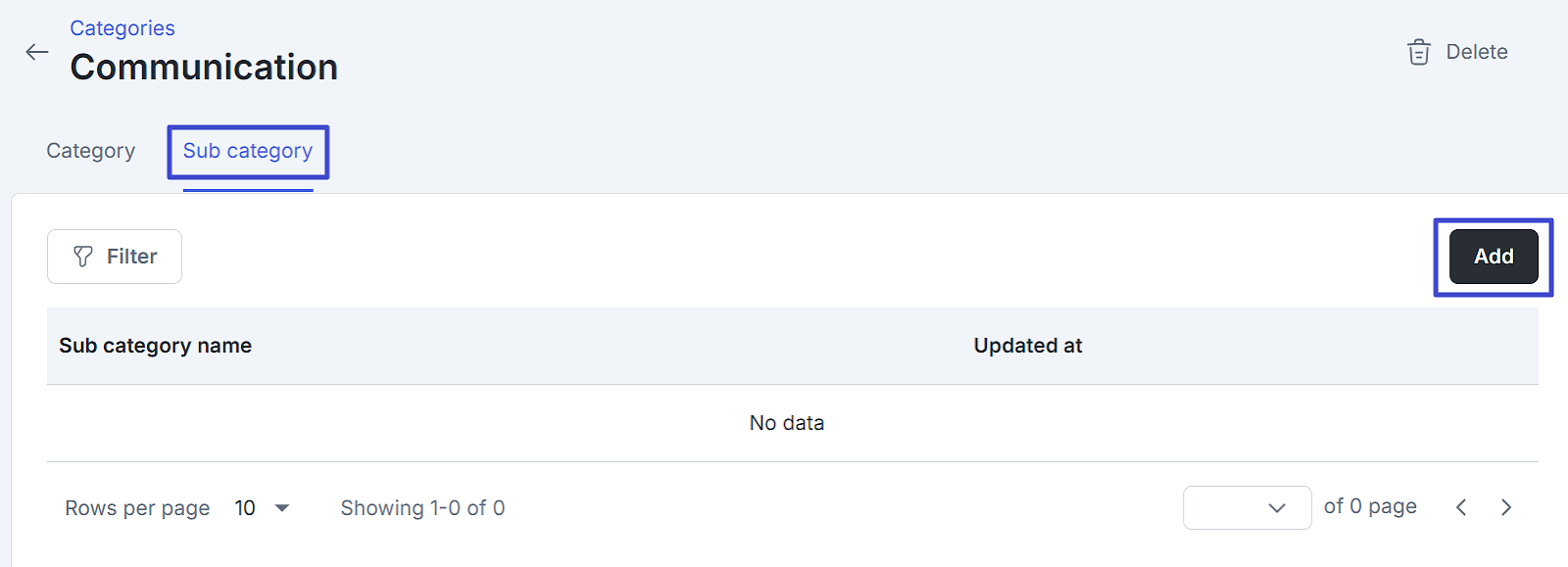 On the Sub category tab, click the “Add” button to add a subcategory.