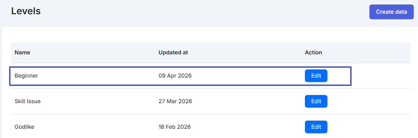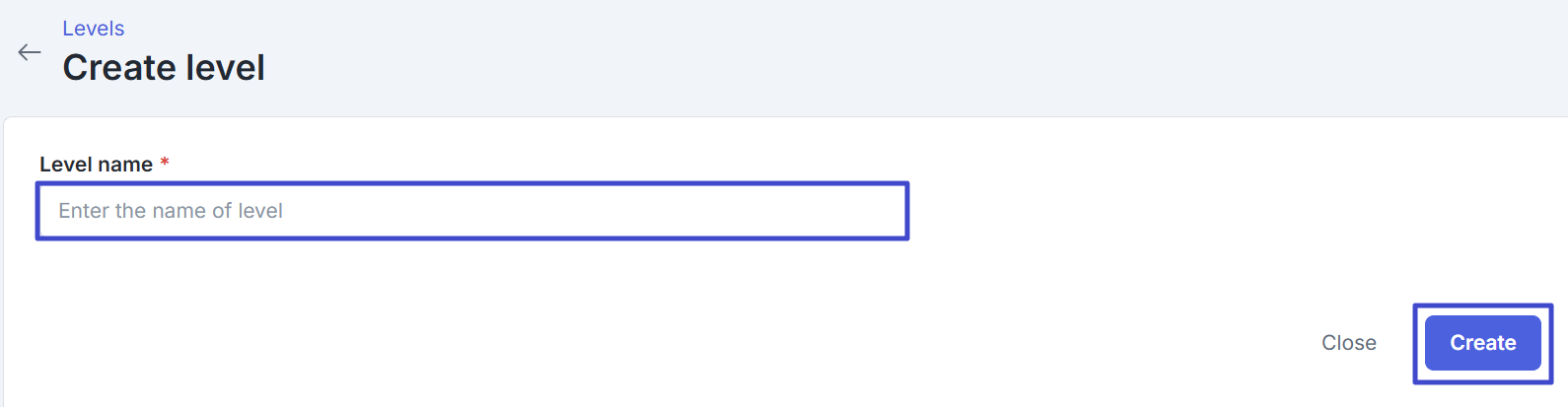 Enter the Level name, then click “Create”. For example, the level created is Beginner.