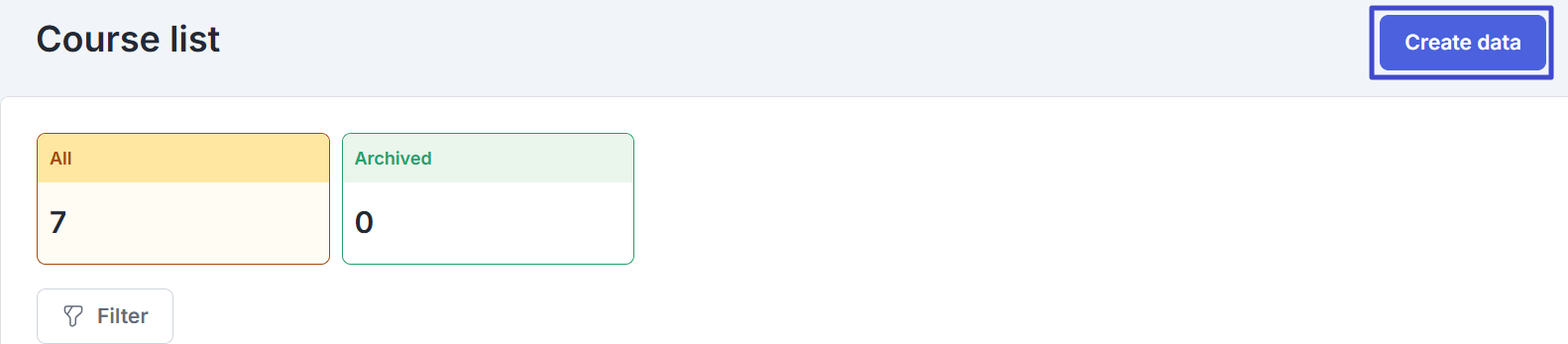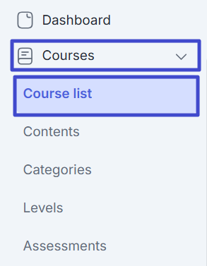 Once categories, subcategories, levels, and quiz, pre-test, or post-test have been prepared, you can create the overall training on the Course list page.