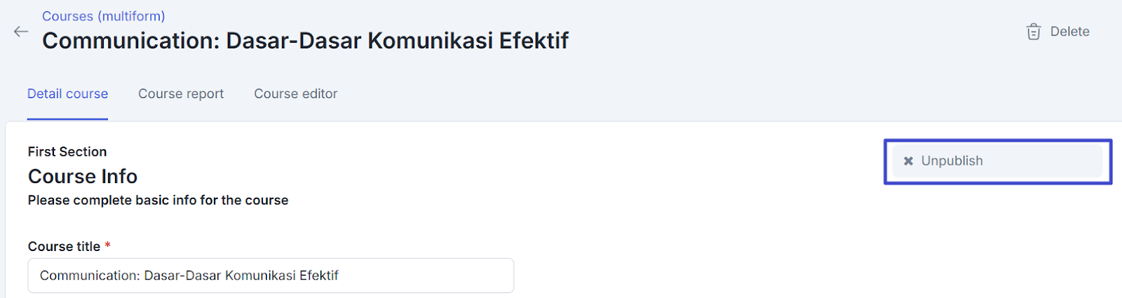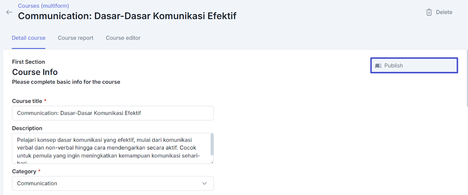 Then, to assign and publish the course, go back to the Course detail page and click “Publish”.