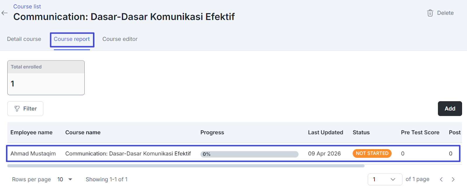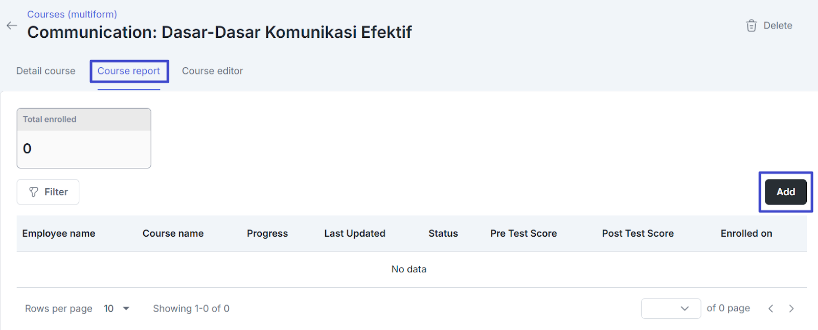 To assign the course to employees, go to the Course report tab and click “Add”.