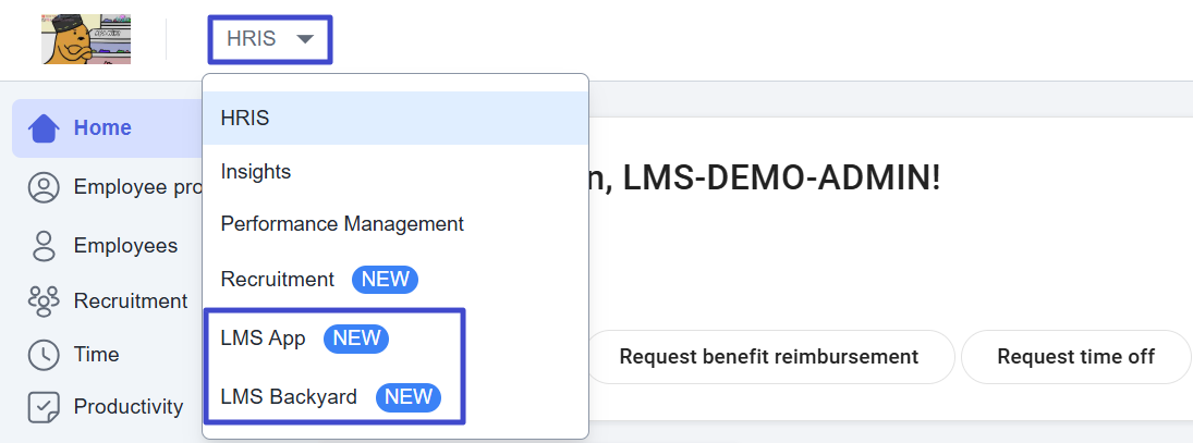 Then click “HRIS” and select LMS Backyard to enter the LMS management page for administrators.