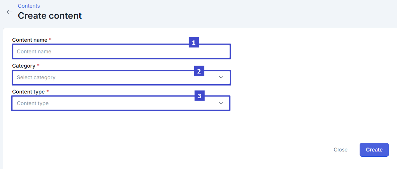 | 1 | Content name | Specify the name of the content you are uploading. |