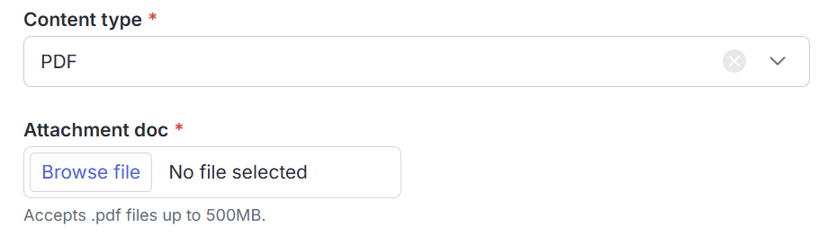 Select the file type you are uploading here. There are three file types you can choose: PDF, Video, or YouTube Video. If you choose PDF or Video, you can upload the file by clicking “browse”. If you choose YouTube, you can input the YouTube URL in the provided field. If you want to delete the file, you can click the “strip” icon. |