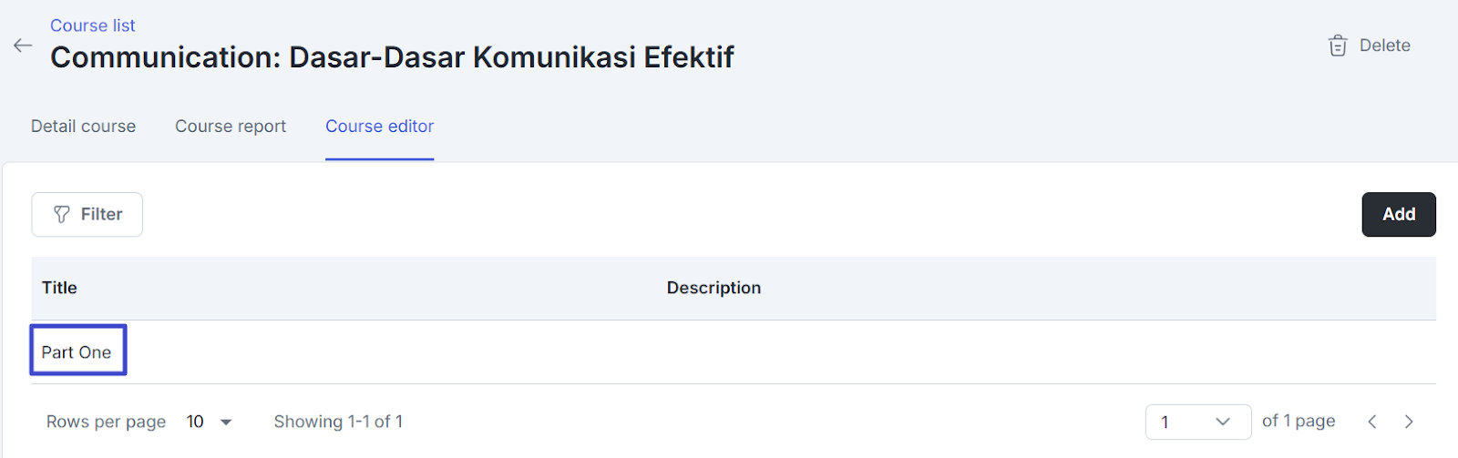 You will be directed to the Course list page. You can reopen the course detail page by clicking the “course name”.