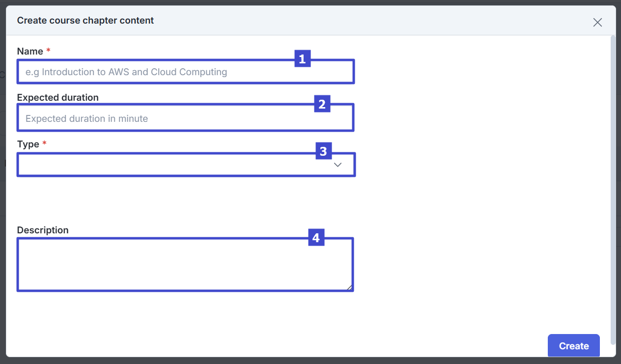 Enter the Title of this material, and you can also add a Description about the material (if needed), then click “Create”.
