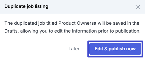 Then the following pop-up appears, click “Edit & publish now” to immediately duplicate it in the form of a job listing draft.