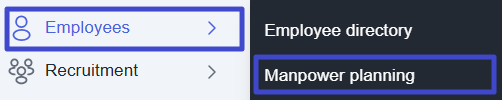 Go to the “Employees” menu, then select Manpower planning.