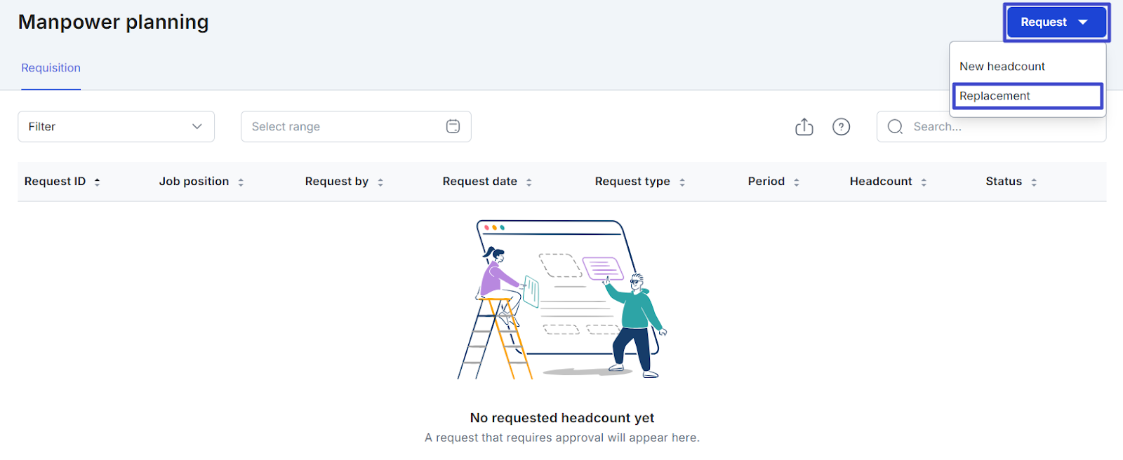 If you are an employee with the access role Employee assigned to manage workforce planning, you can access the Manpower Planning page through Mekari Talenta. On this page, you can submit a request for the Replacement of an employee. This way, the process of requesting a replacement employee can be done more easily.
