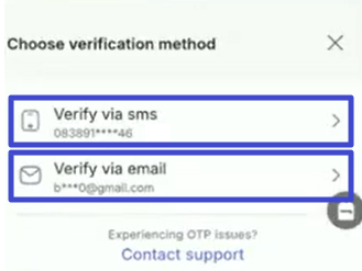 8. If you select Use other methods, you can choose the option to Verify via SMS or Verify via email.