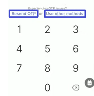 7. If you encounter problems receiving the OTP, you can wait 1 minute until the option to Resend OTP (Resend OTP to WhatsApp) or Use other methods (Try another method) appears.