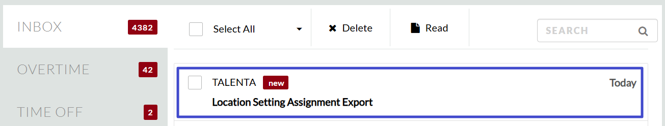 You will be directed to the Inbox page in a new tab. Click the message titled “Location Setting Assignment Export”.