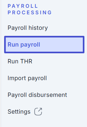 1. Masuk ke menu Payroll lalu pilih Payroll processing.