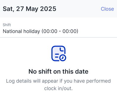 Detail kehadiran saat National holiday.