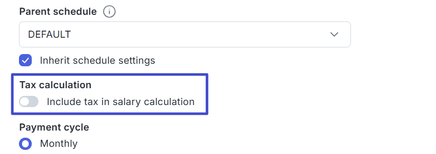 Centang Tax calculation jika perhitungan pajak akan dihitung bersamaan dengan proses run payroll default. Sebaliknya, jika tidak diaktifkan maka saat proses run payroll payment schedule akan langsung terhitung pajaknya.