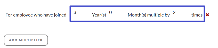 10. Selanjutnya, pada Multiplier Setting Criteria, Anda dapat mengatur berapa kali gaji yang diterima karyawan saat THR pada cabang tersebut. Sebagai contoh di bawah, karyawan yang bekerja di cabang “HQ initial” selama 3 tahun bisa mendapatkan THR 2 kali gaji.