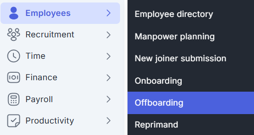 Masuk ke menu Employees lalu pilih Offboarding.
