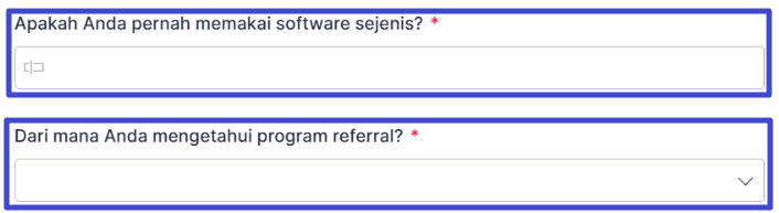 Apabila Anda pernah menggunakan software sejenis dengan produk Mekari, Anda dapat sebutkan nama software tersebut dan beritahu kami dari mana Anda mengetahui Program Referral Mekari.
