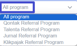 Berisi filter yang memudahkan Anda untuk menyaring data Program. Saat ini fitur Commission hanya terintegrasi oleh Mekari Jurnal. |