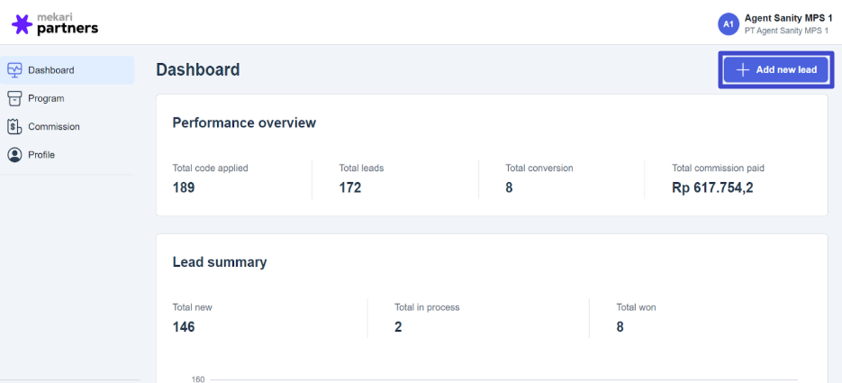 Melalui fitur Add New Leads pada Mekari Partner Platform