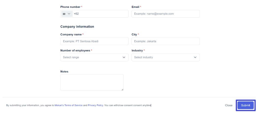 Klik “Submit” bila data sudah sesuai, lalu dengan otomatis Tim Mekari akan memproses Leads Anda.