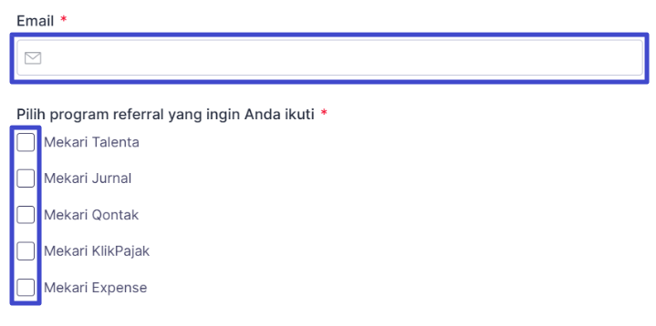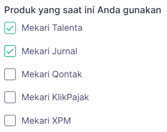 Jika Anda pengguna produk Mekari, centang produk Mekari yang saat ini Anda gunakan. Jika Anda bukan pengguna, silakan lewati pilihan ini.