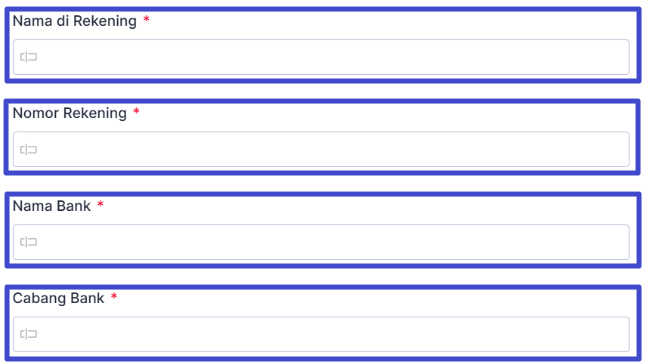 Lengkapi juga informasi detail berupa Nama di rekening, Nomor rekening, Nama Bank, dan Cabang Bank (data rekening wajib sesuai dengan data Identitas Anda).