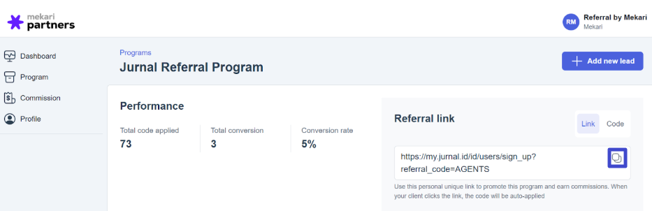 Selain mempercepat proses dari tim Mekari, mendaftarkan Leads juga membantu memastikan pencatatan secara resmi dalam sistem sehingga Anda tidak kehilangan potensi komisi dari setiap referral Andayang berhasil.